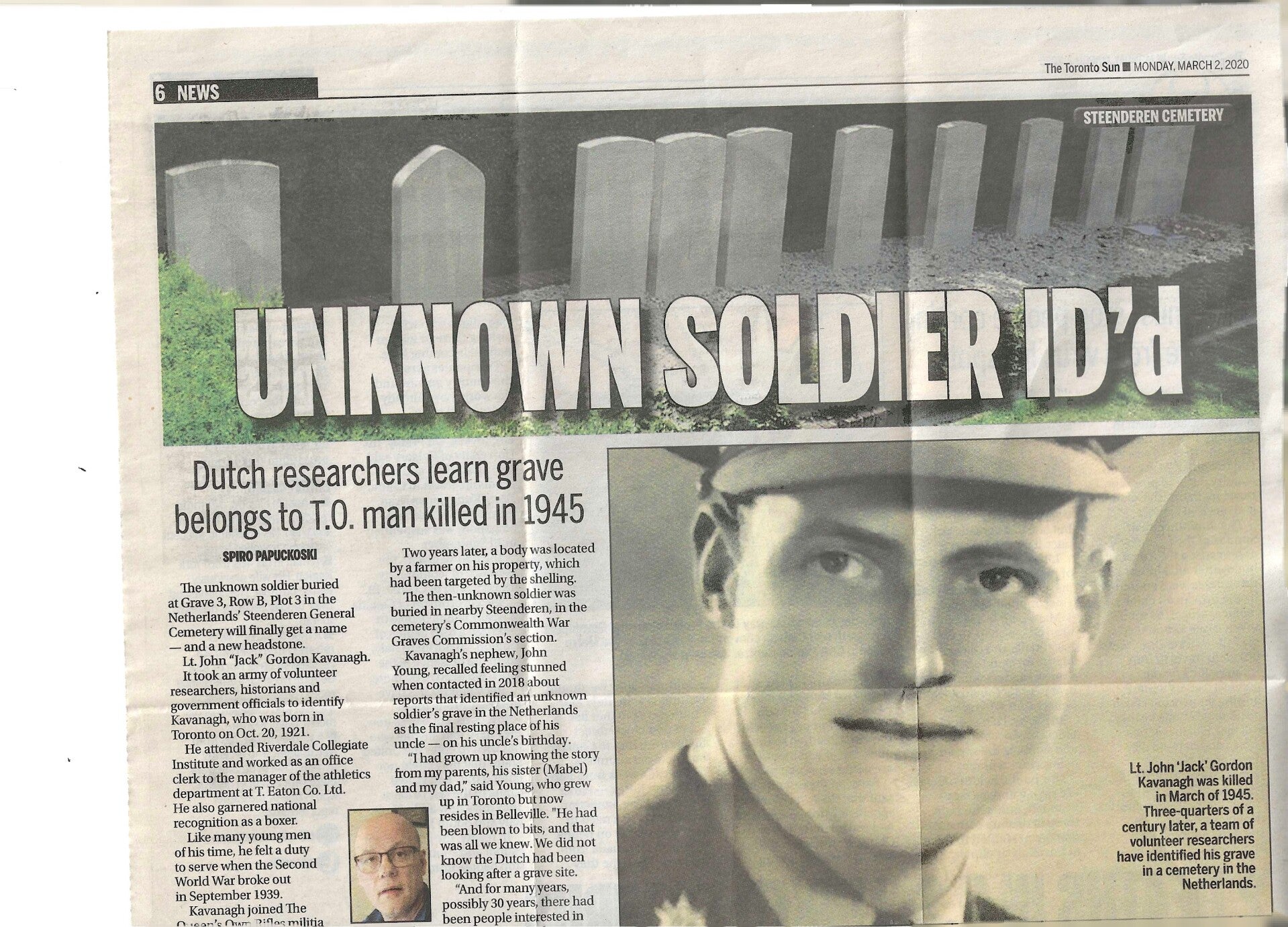 Article about the identification of Flight Lieutenant P.A.N. Cox